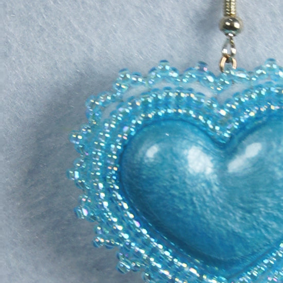 Blue Heart Beaded Earrings