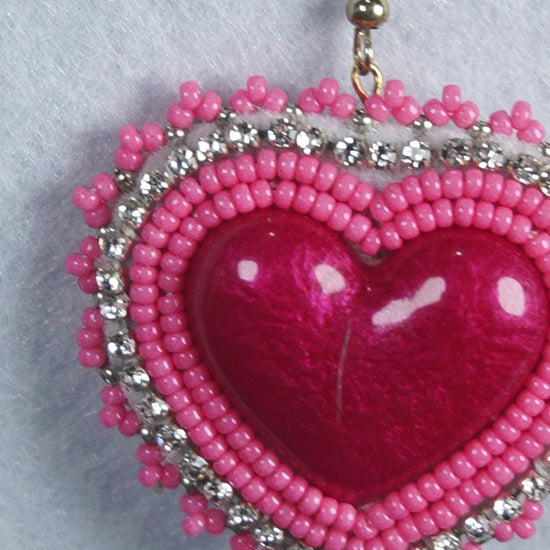 Pink Heart Beaded Earrings