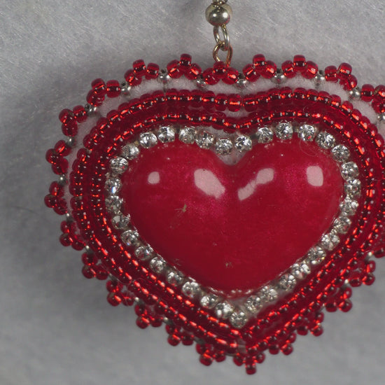 Red Heart Beaded Earrings